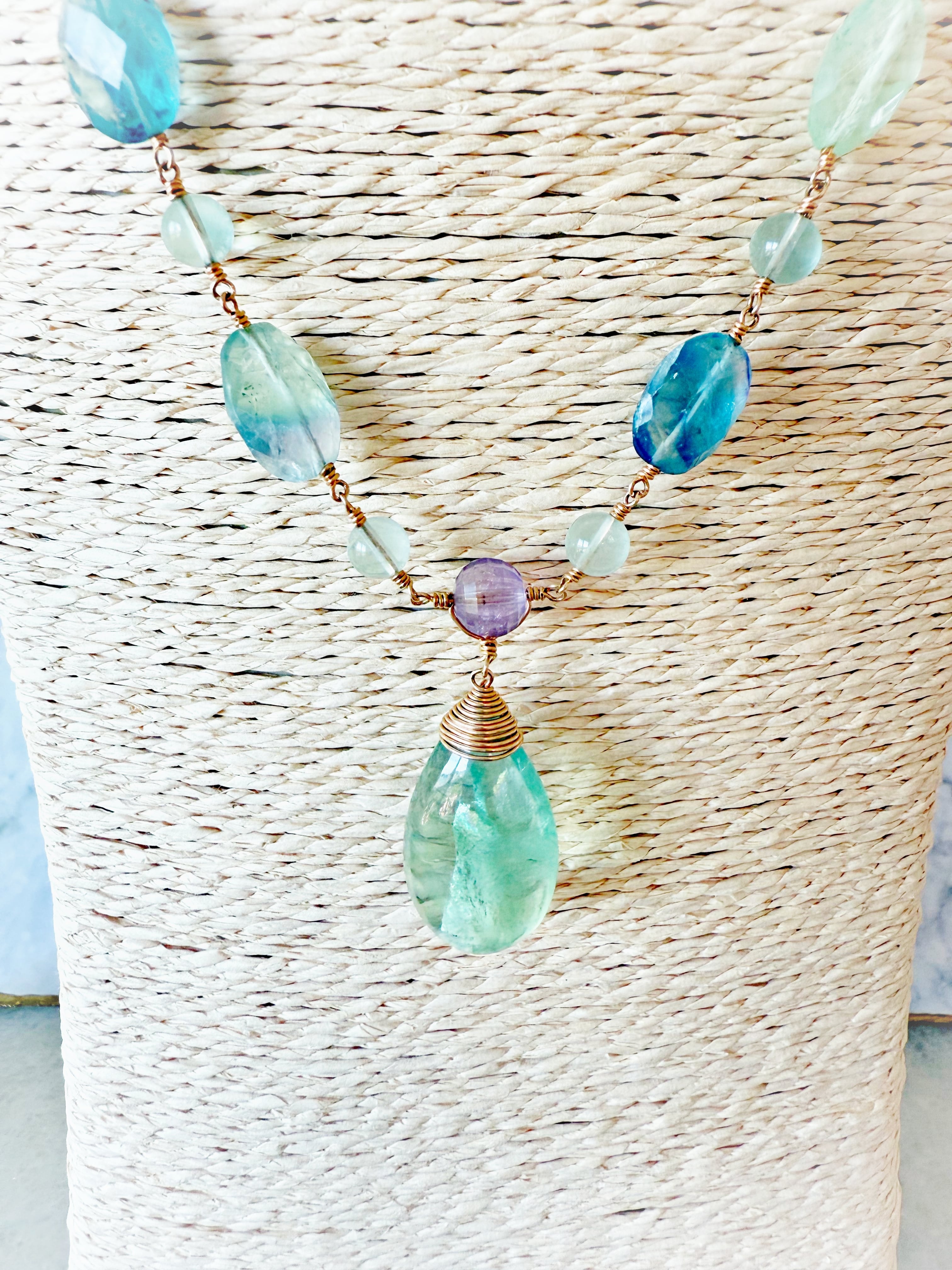 《ビビッドに映える夏のジュエリー》フローライトネックレス&ピアスセット