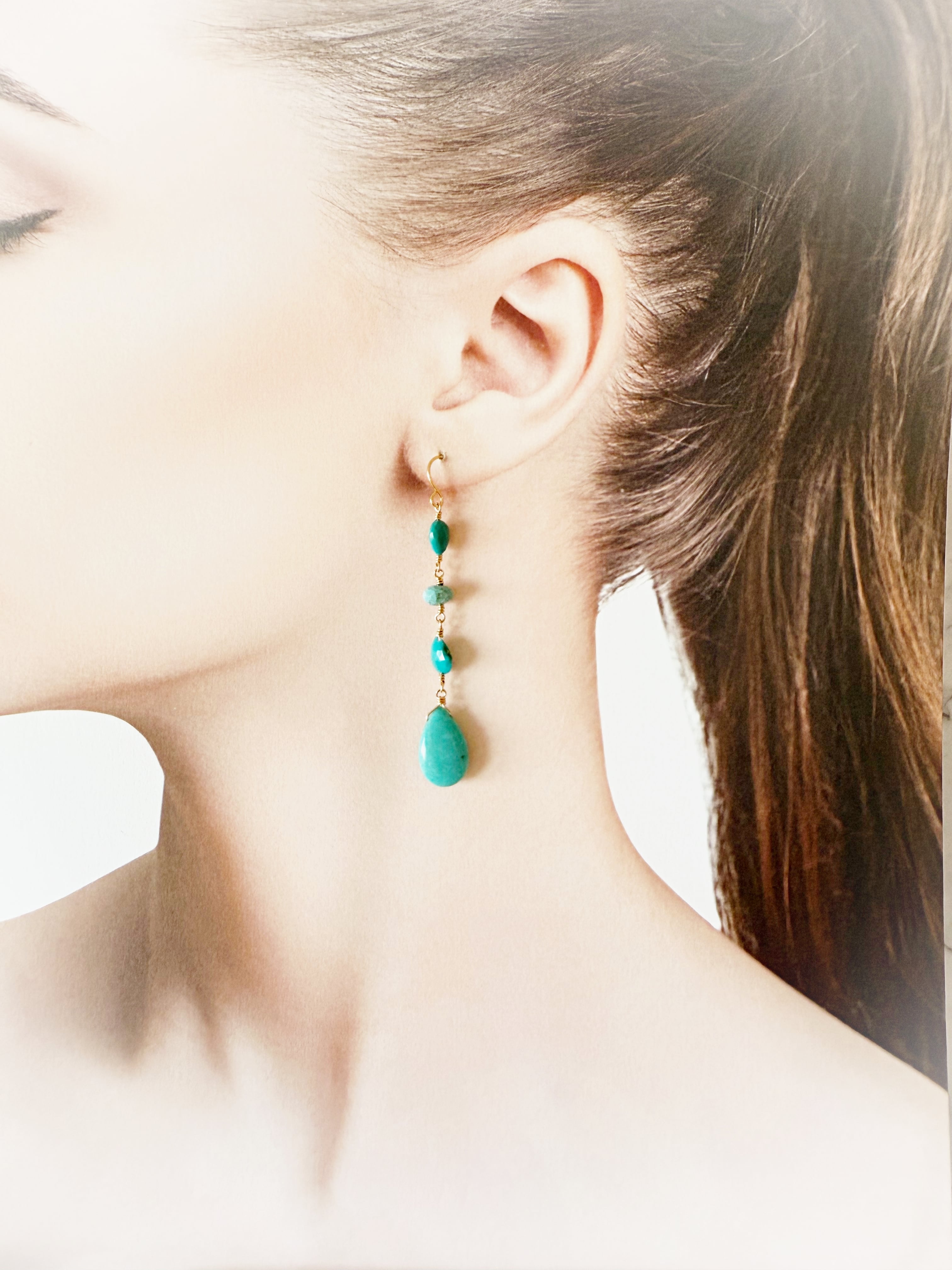 先端に、希少なスリーピングビューティー産のターコイズ(水色ティアドロップ型)を使用しています。