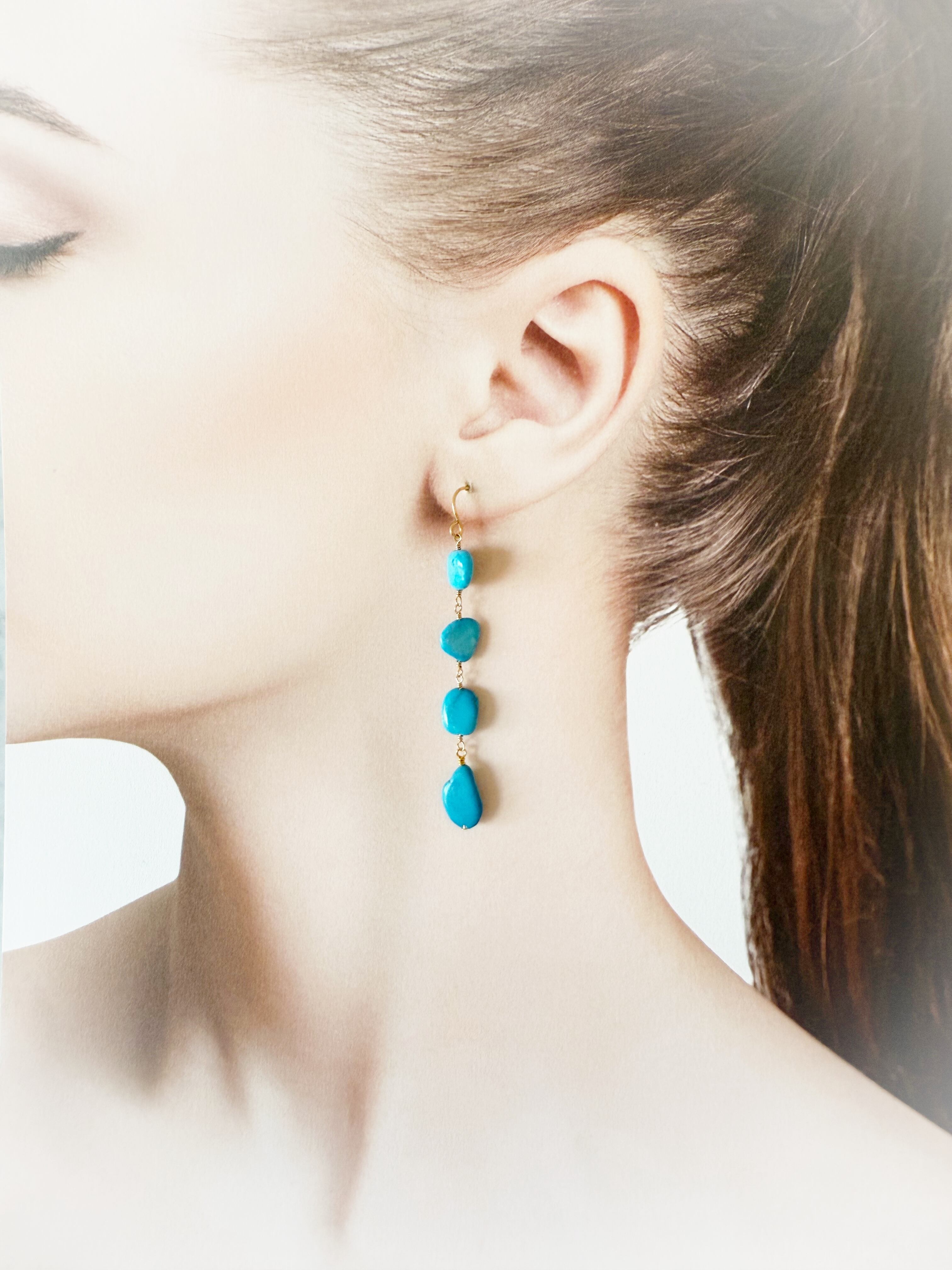 《オーシャンブルーの夏》アリゾナターコイズ ロングピアス(単品)
