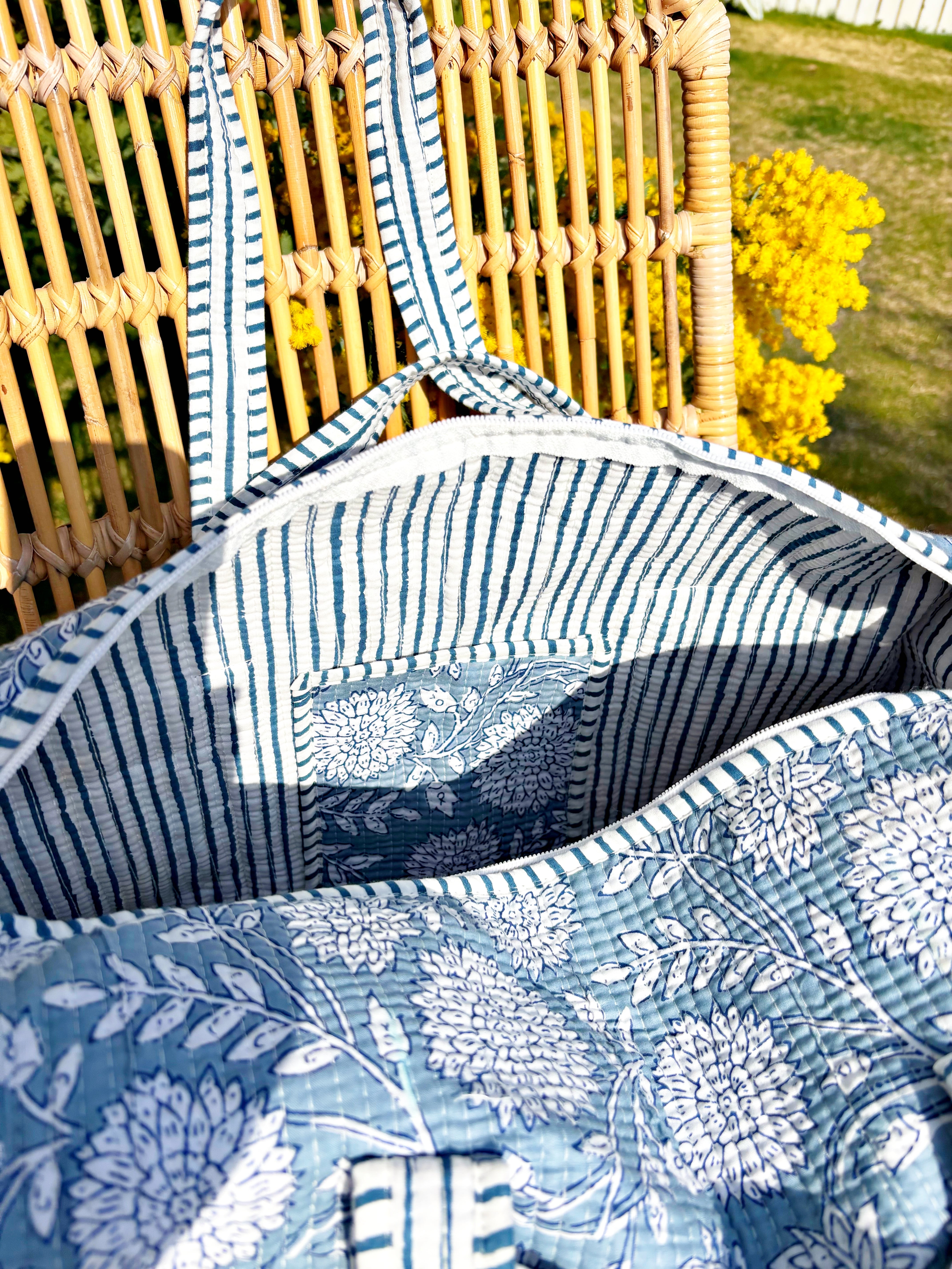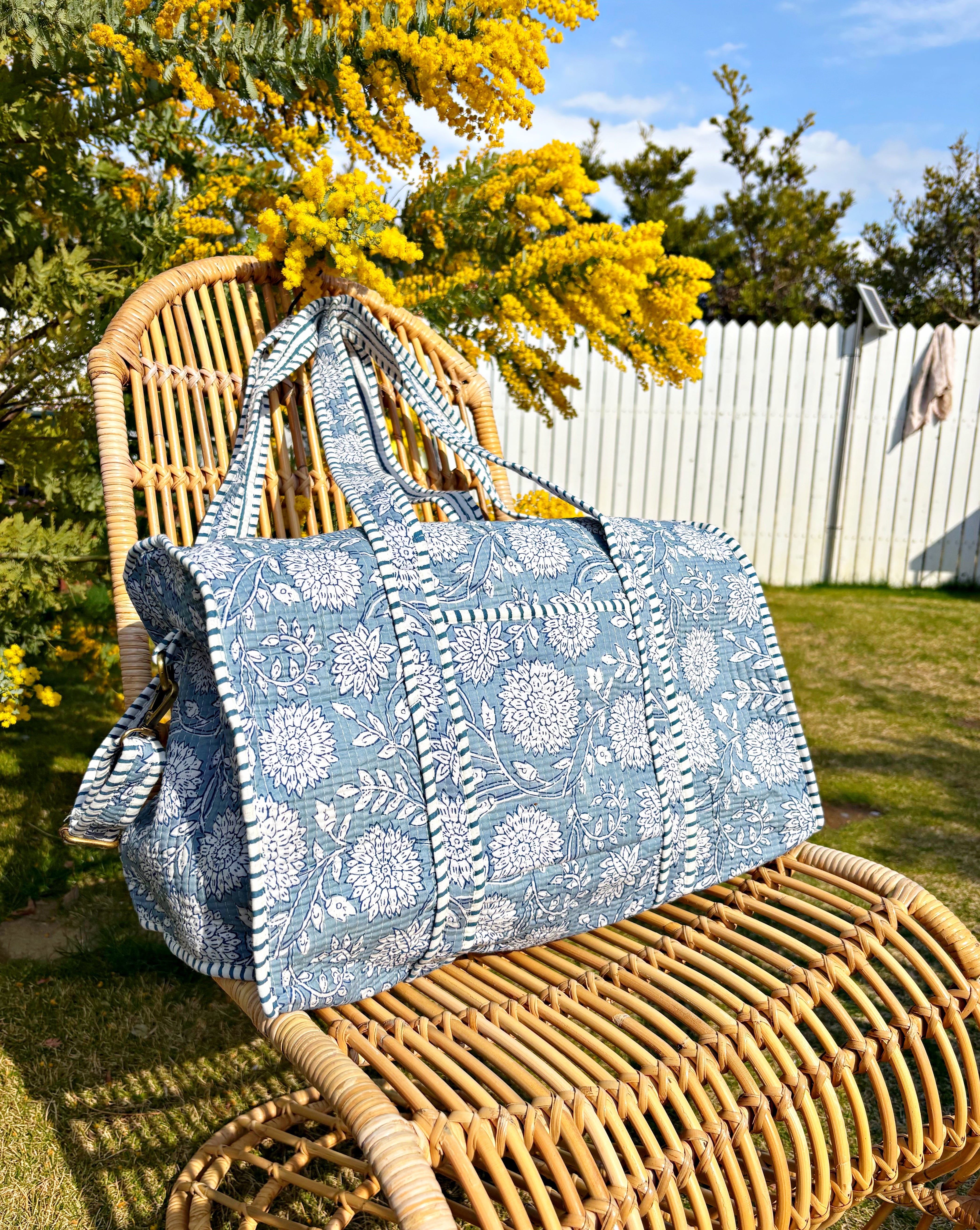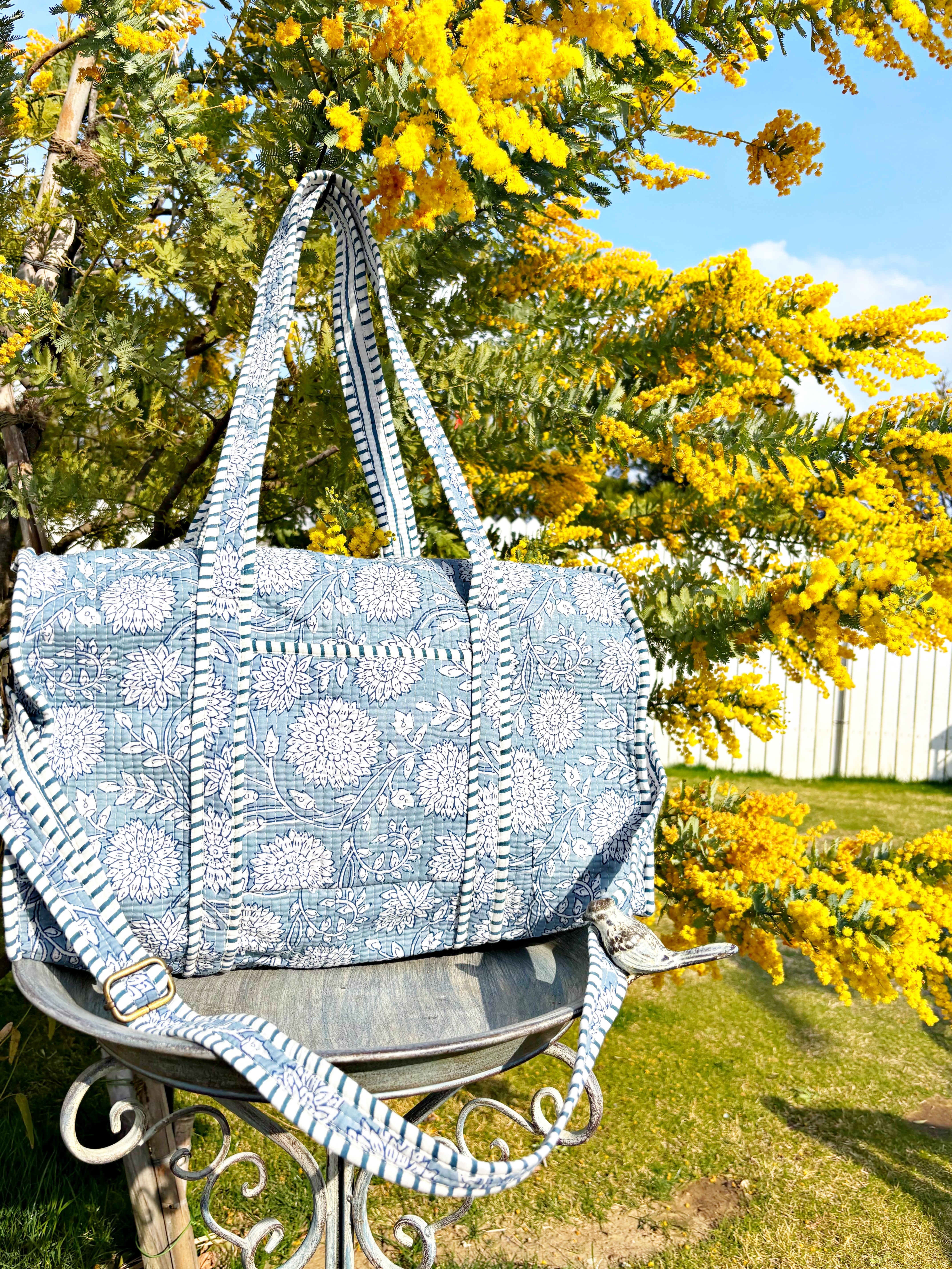 《Botanical Boston Bags ①》Blue Flower(ショルダーストラップ付き)