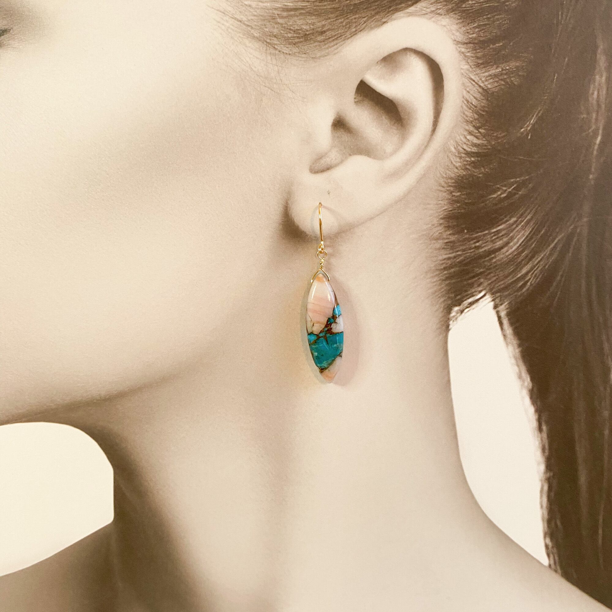 ピンクオパールコッパ―ターコイズピアス(2)