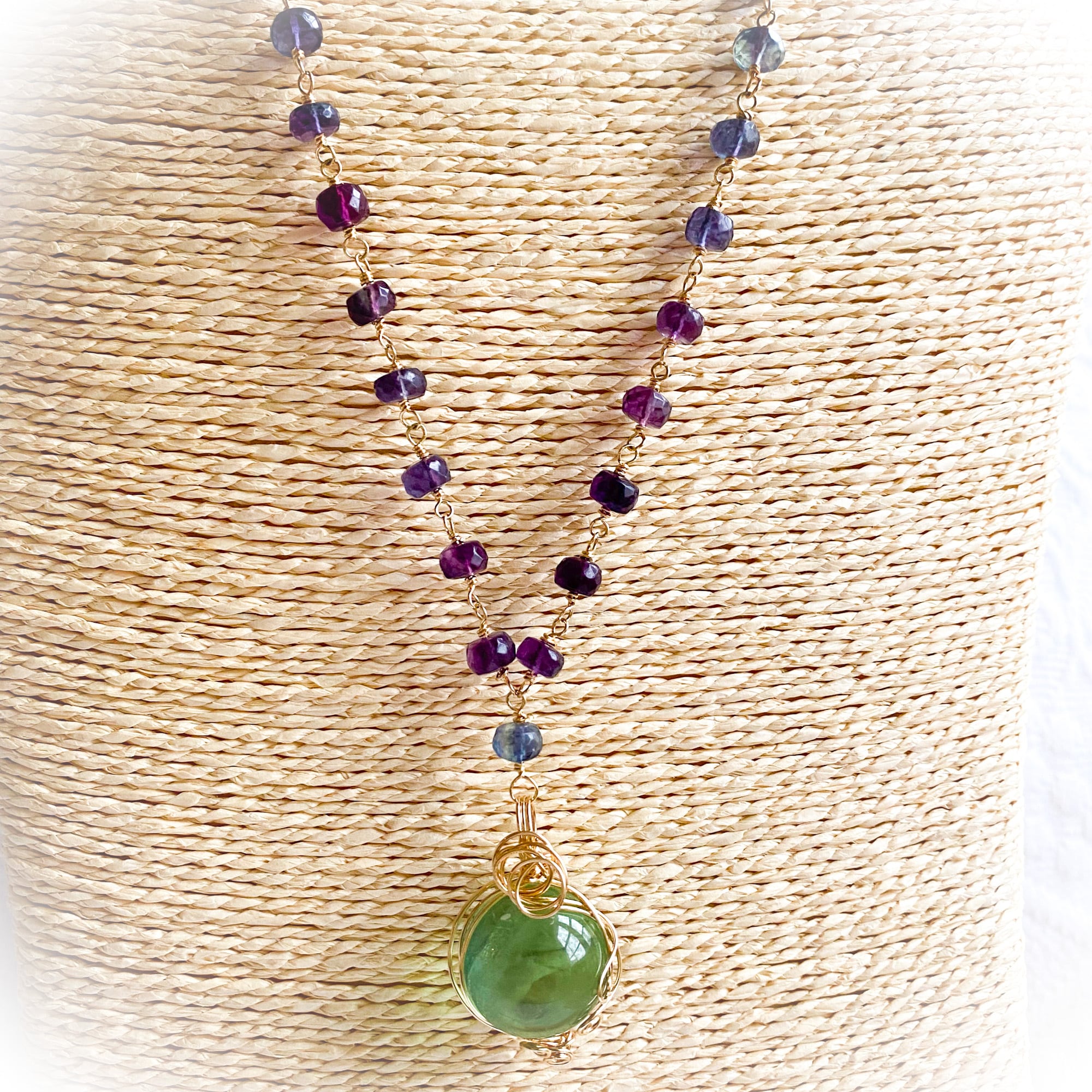ペンダントトップもネックレスもぜーんぶフローライト!!金具はなくそのまま被るタイプです。