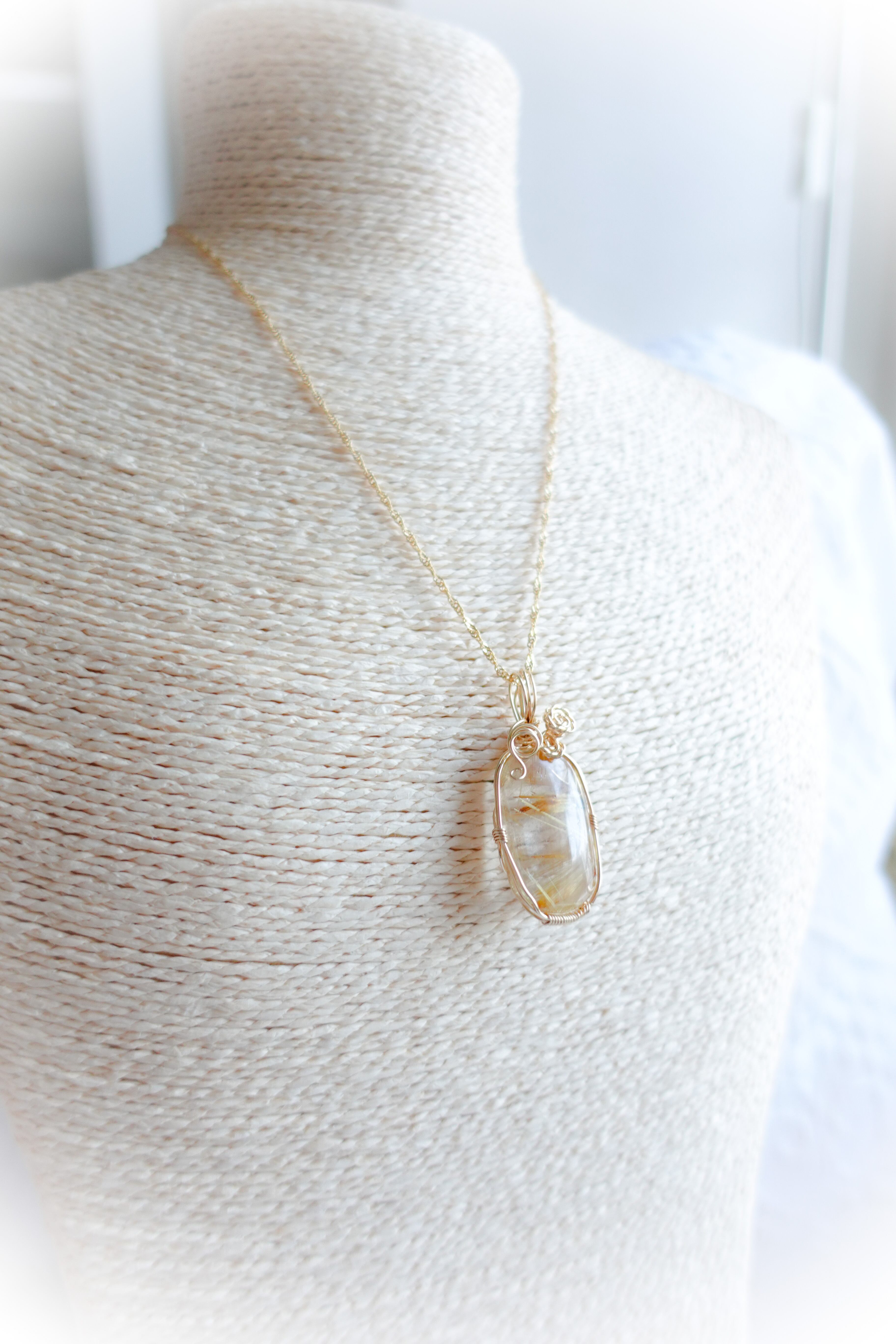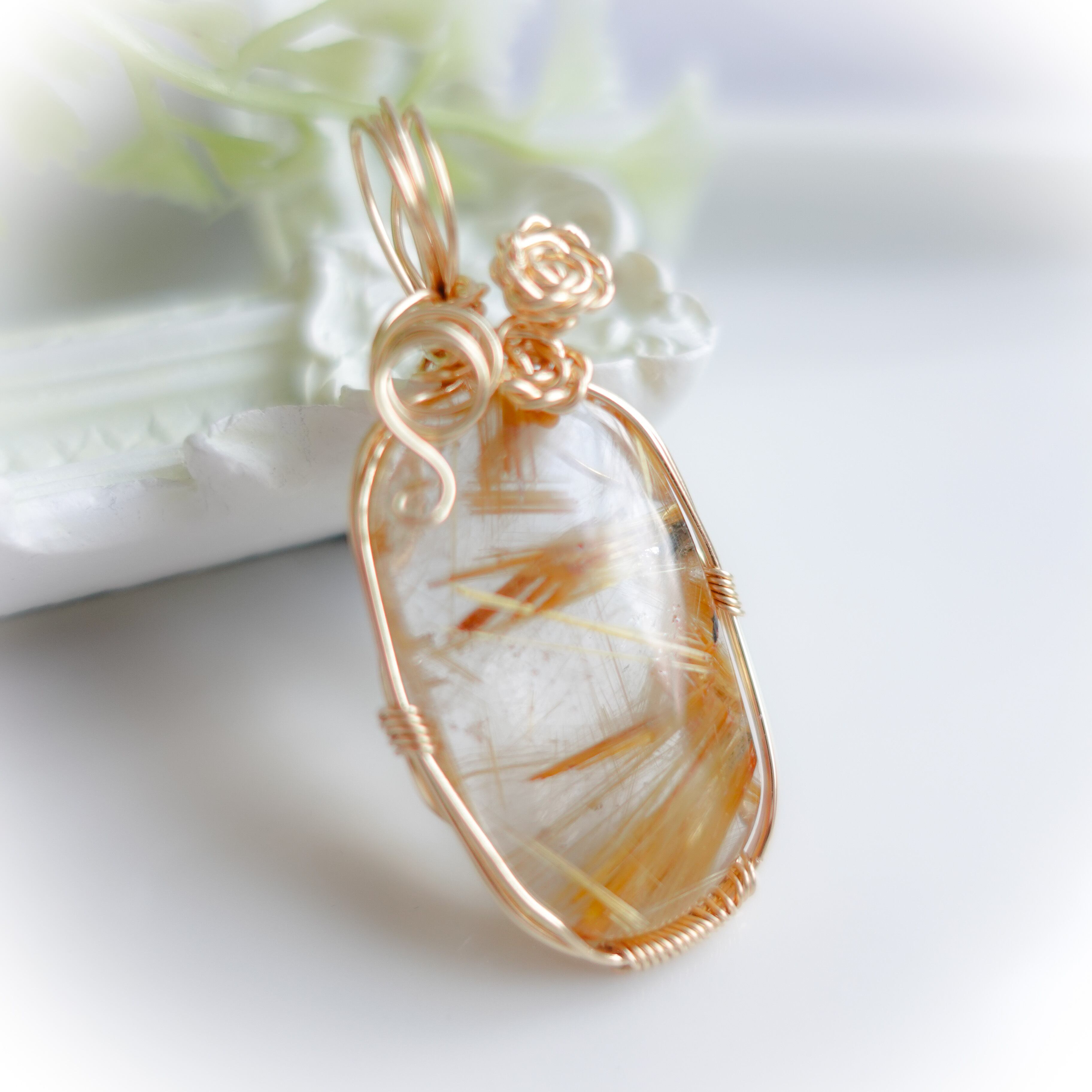 【天然のお花模様】ゴールデンルチルクォーツペンダント(2)