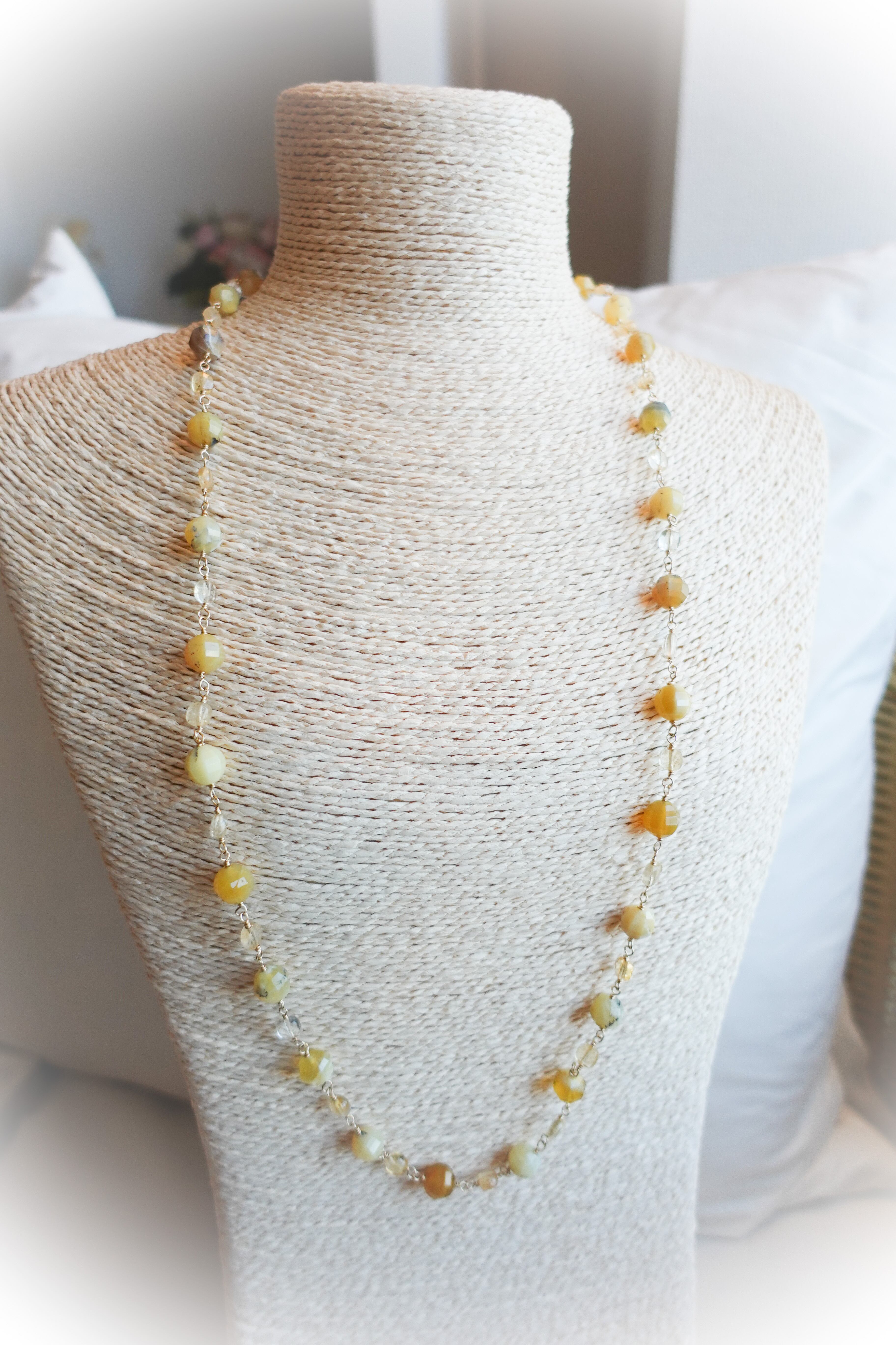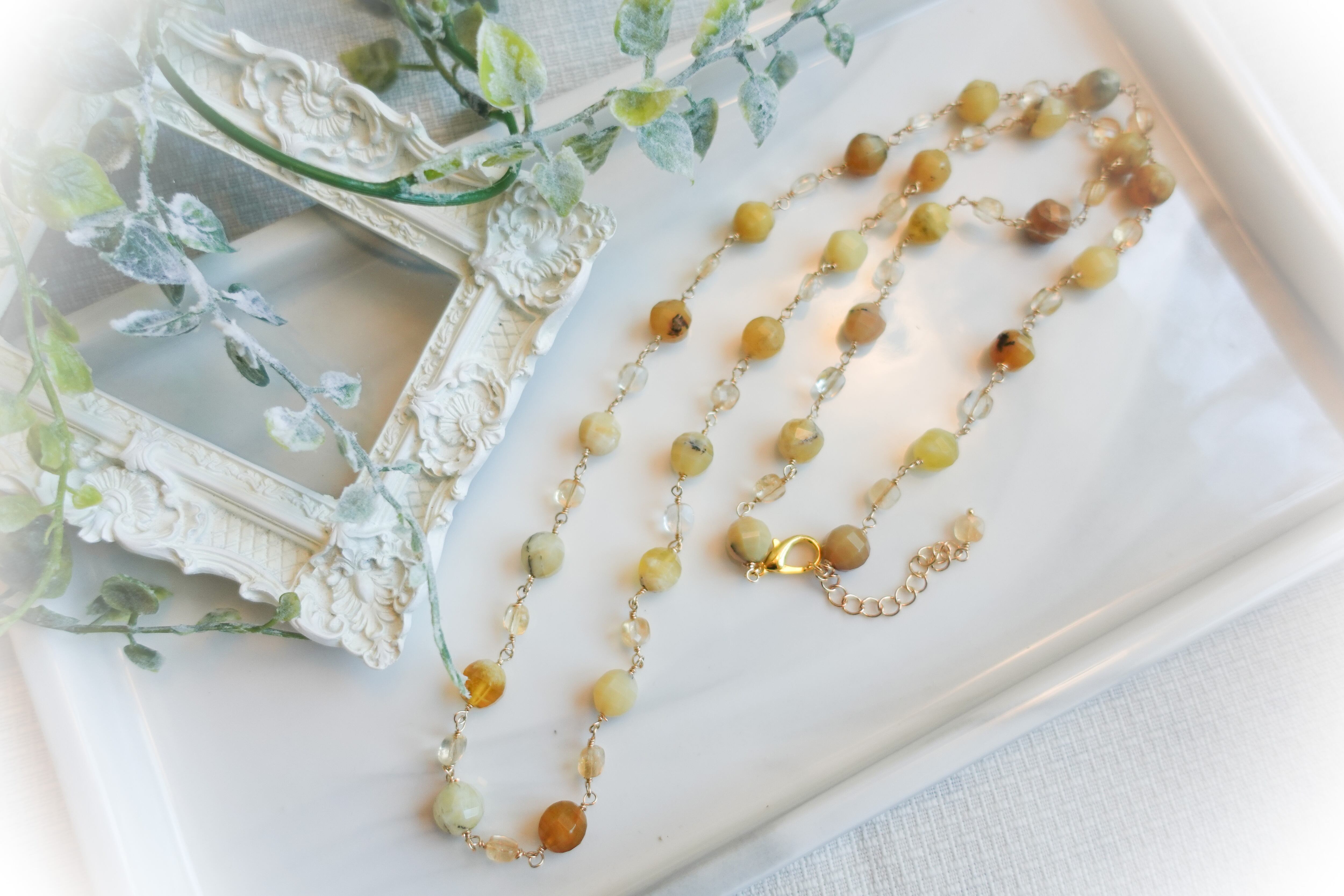 【春色】はちみつみたいなイエローオパール&シトリンネックレス・ピアスセット