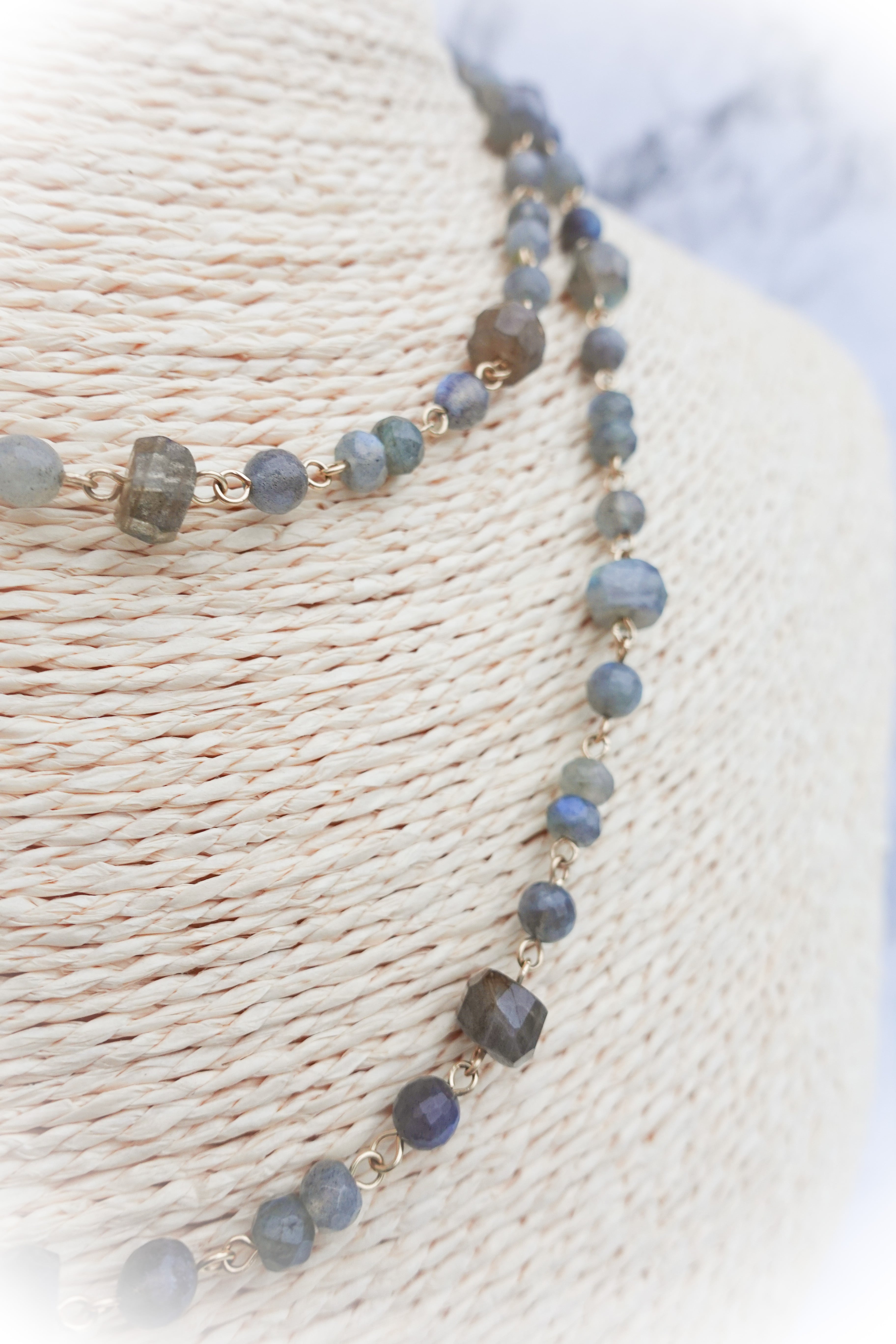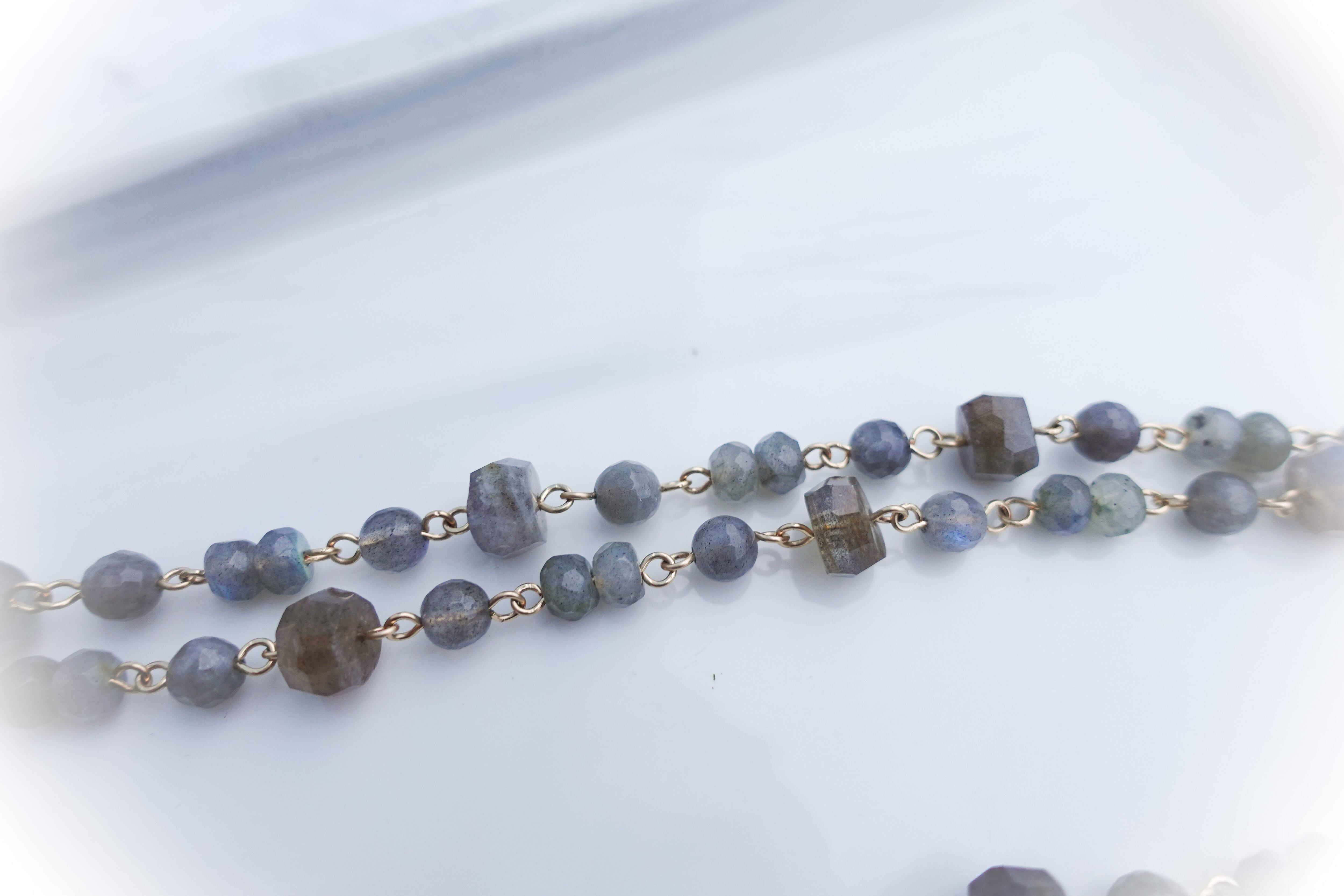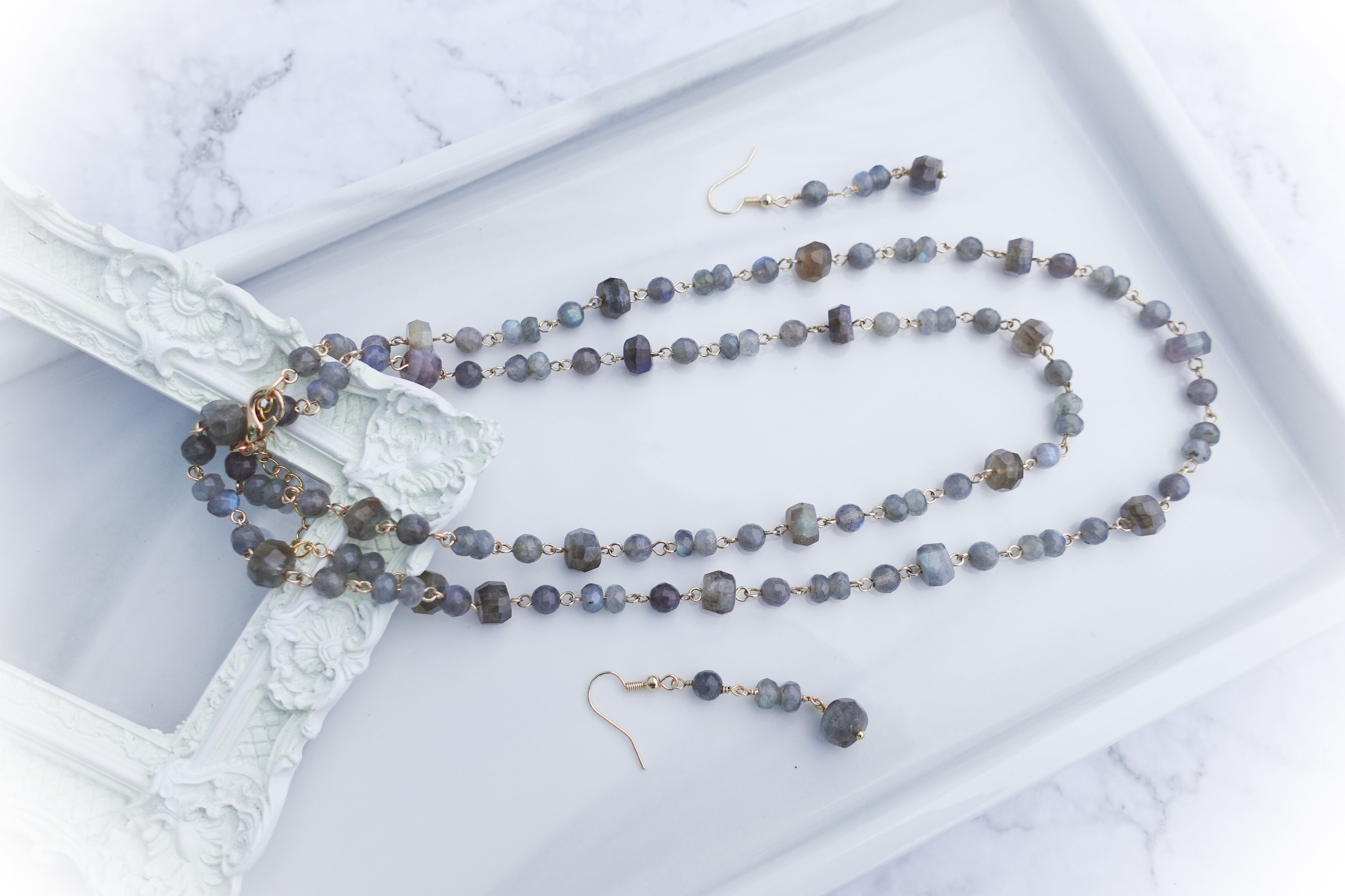 青く怪しく輝くラブラドライトが好きすぎて、ぜーんぶラブラドライトで仕上げた1品です。