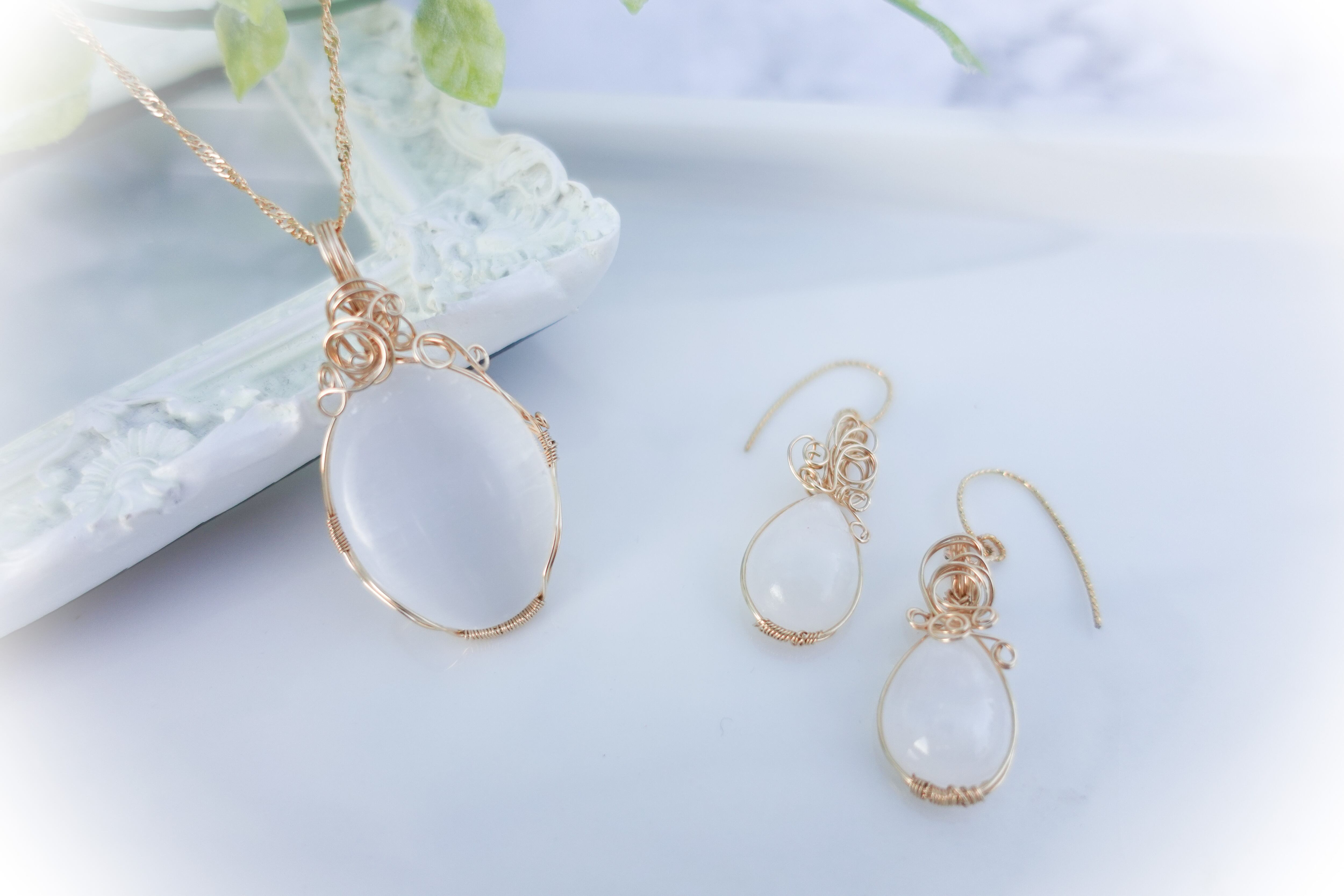 ペンダントトップ、ピアスと、全部ワイヤー装飾なので手が込んでいます!