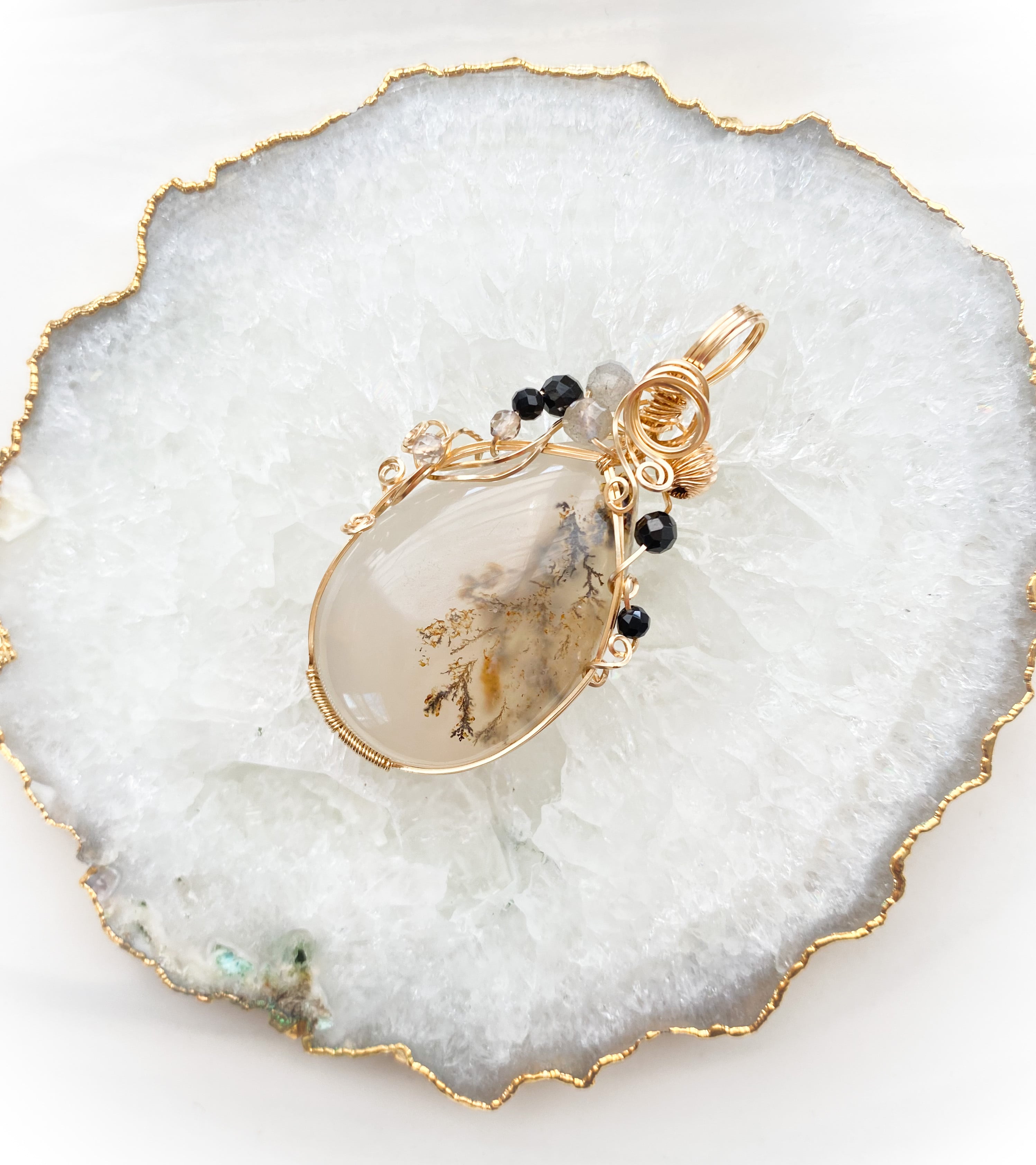 【春の花畑】トルコ産希少モスアゲートペンダント(18KGPネックレス付)
