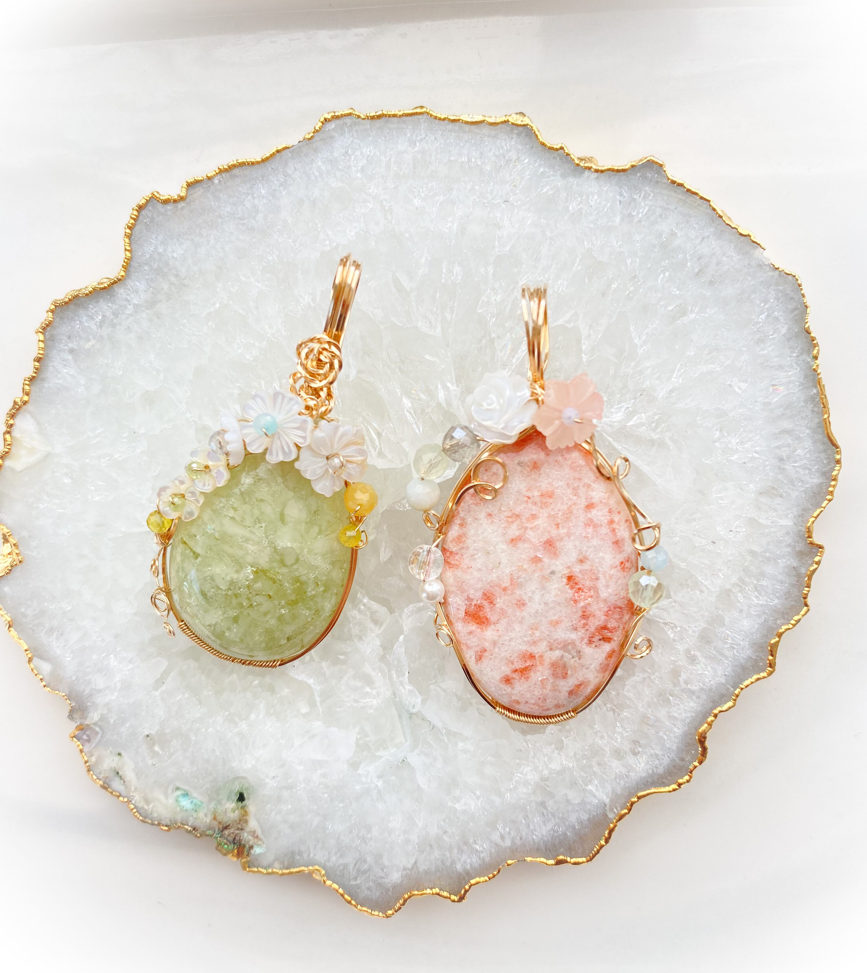 *天然石、天然の素材は衝撃に弱いですので、落としたりぶつけたり、強い力を加えると割れてしまいます。十分にお気を付けください。