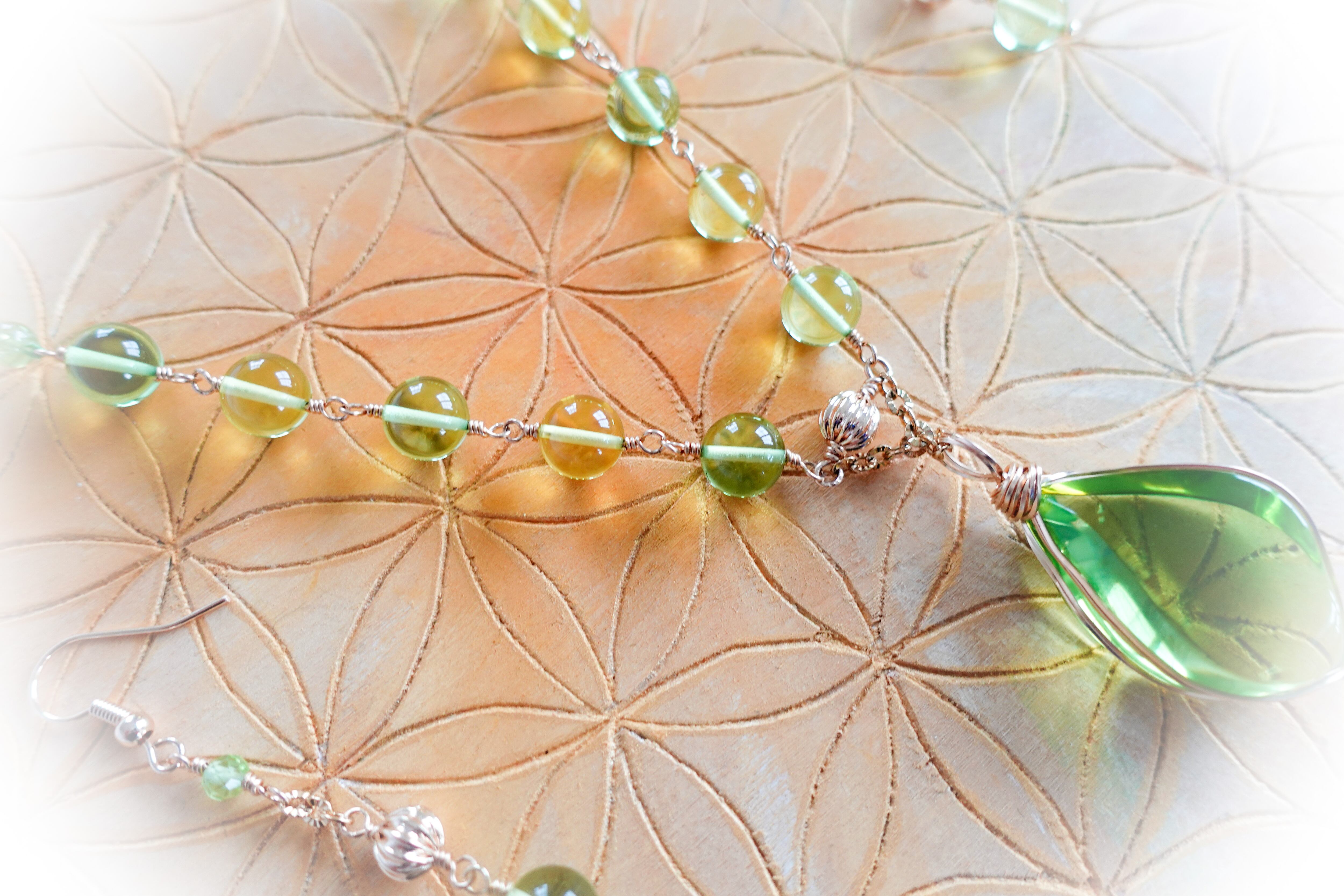 《VIVID&COOLサマー》グリーンアンバー+ペリドットネックレス&ピアスセット