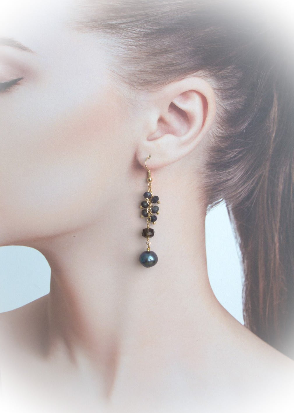 ブラウン系の天然石とダークカラーのパールで、大人色のシックでゴージャスなネックレスを作りました。