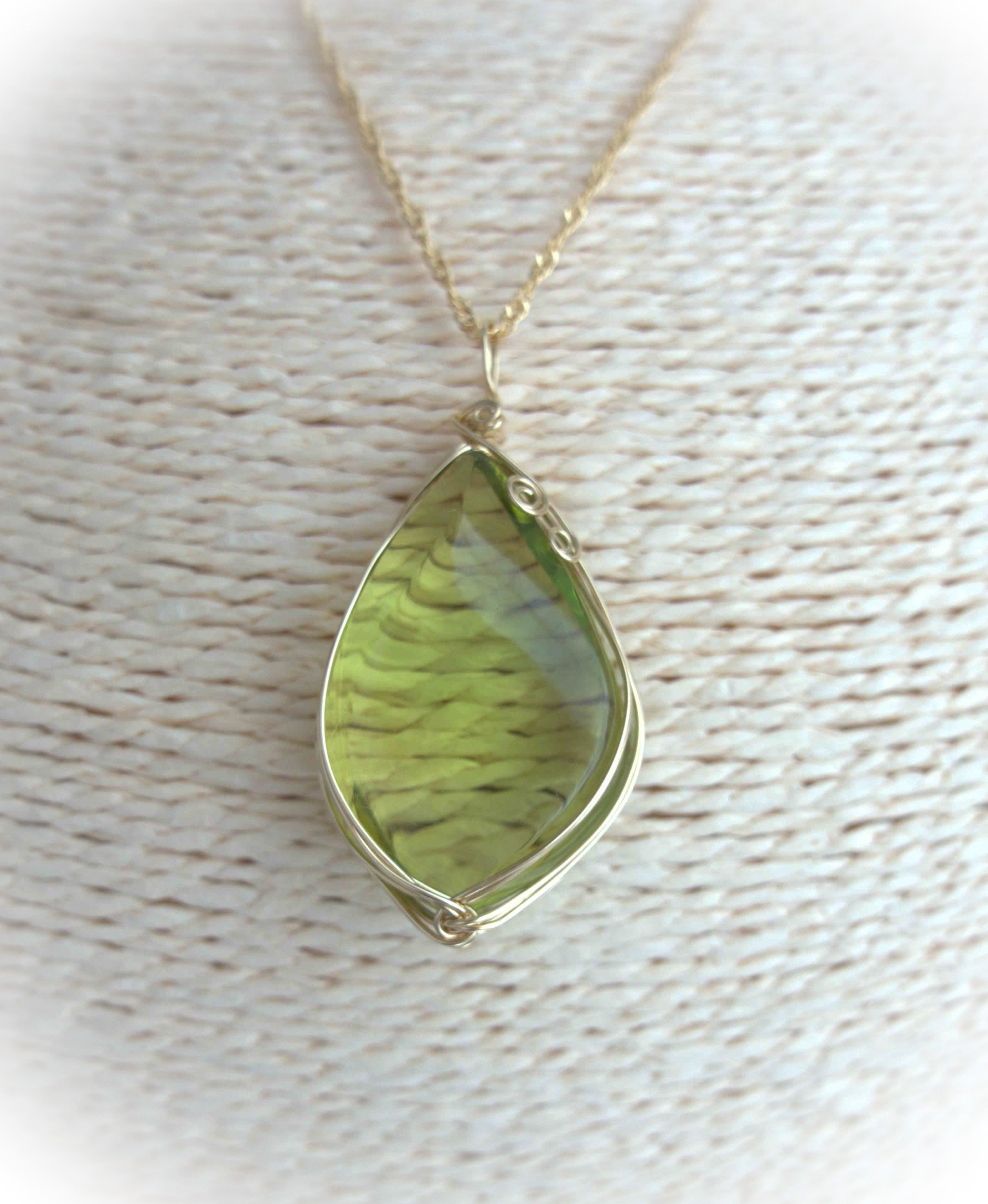 《春の優しいグリーン》グリーンアンバー+ペリドットペンダント&ピアスセット(18KGPネックレス付き)