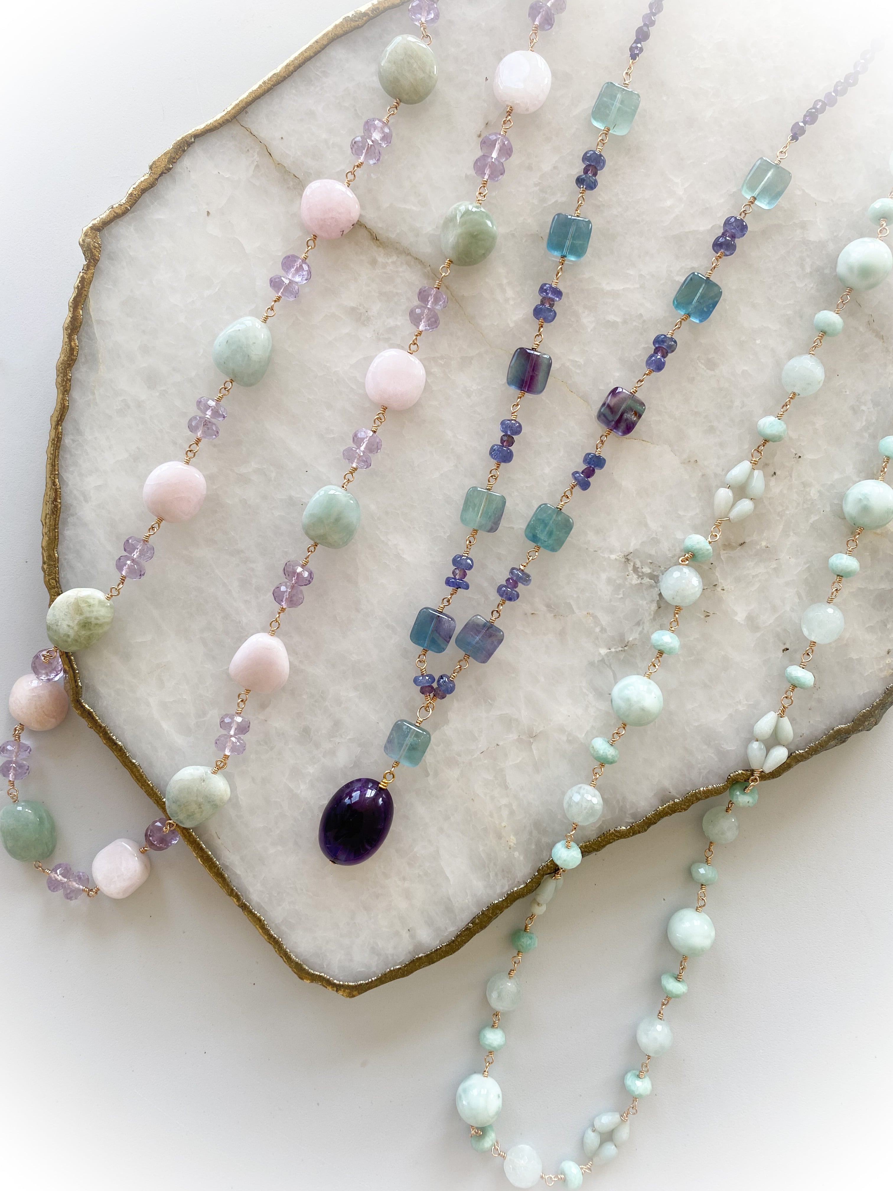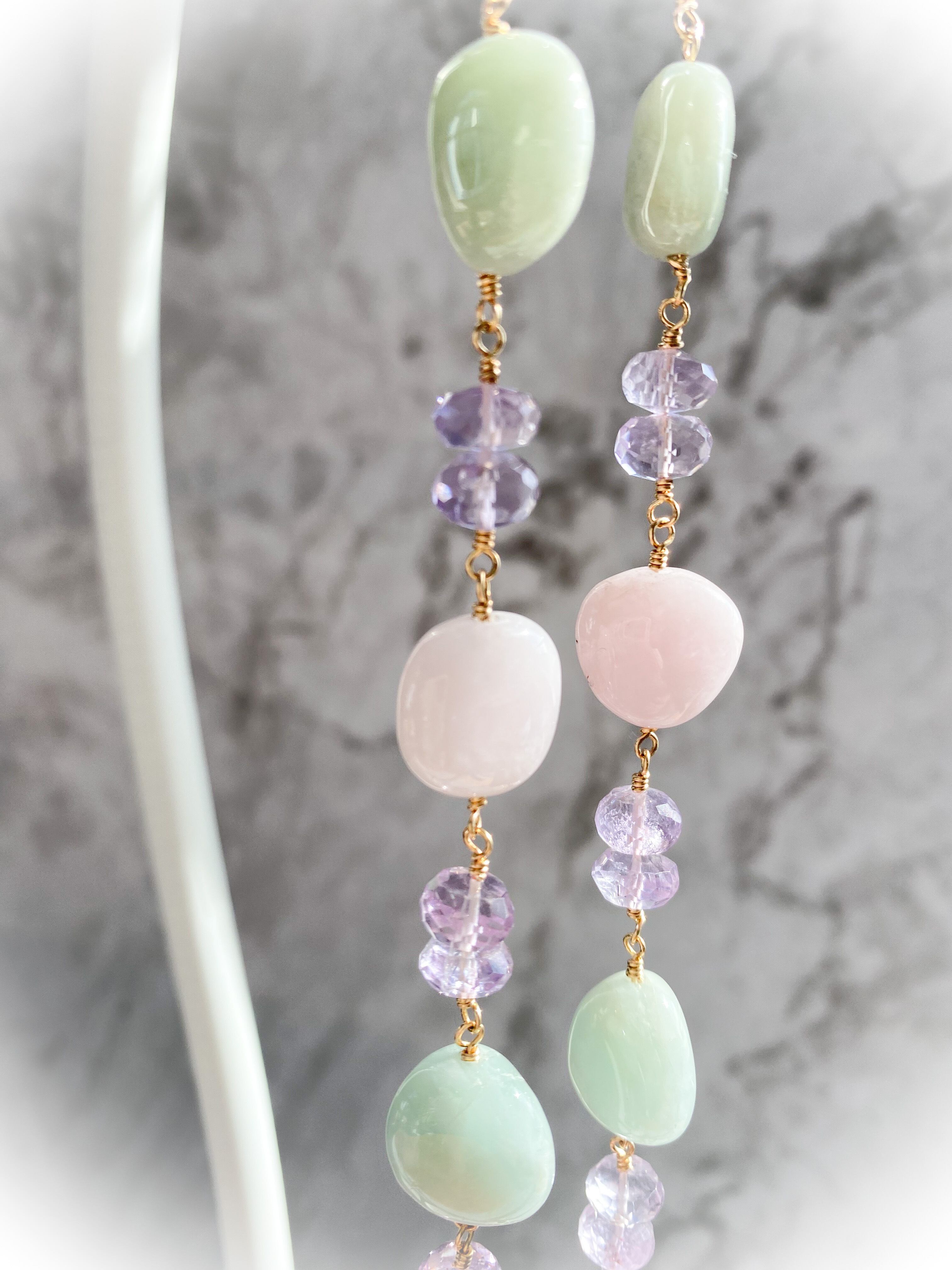 《春の優しい色彩》モルガナイト&アメジストネックレス&ピアスセット