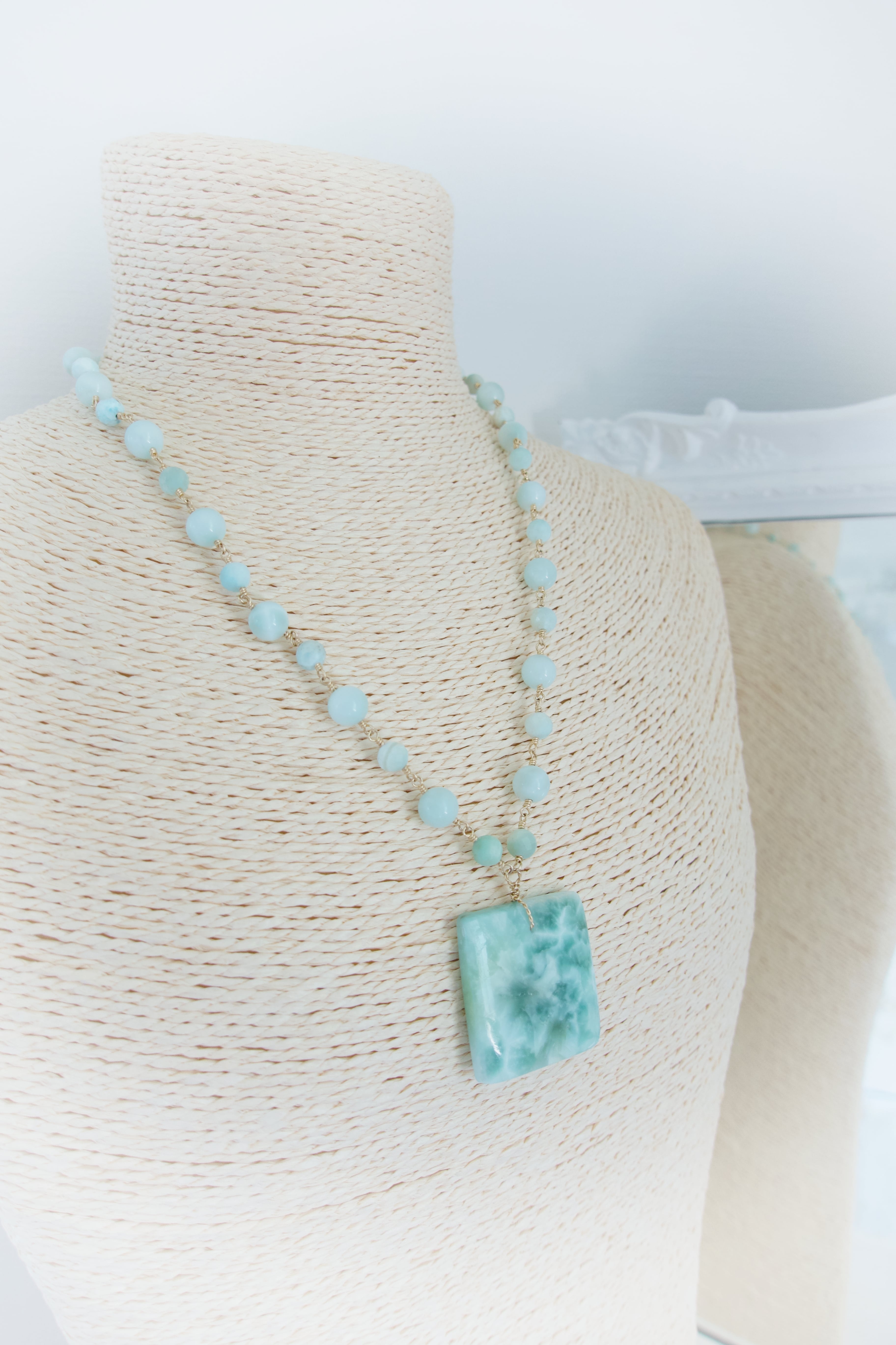 《青葉の季節、大人色のグリーン》ヘミモルファイトネックレス&ピアスセット