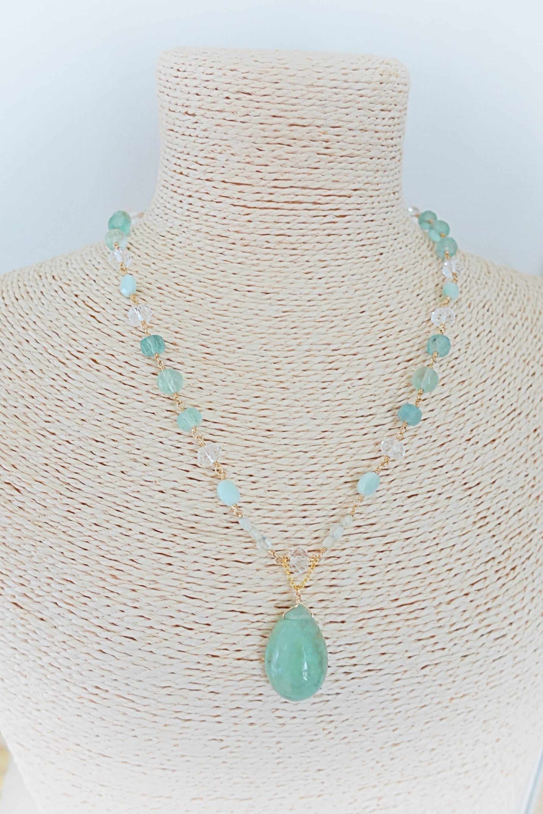 《ハーモニーストーン》グリーンフローライトネックレス&ピアスセット②