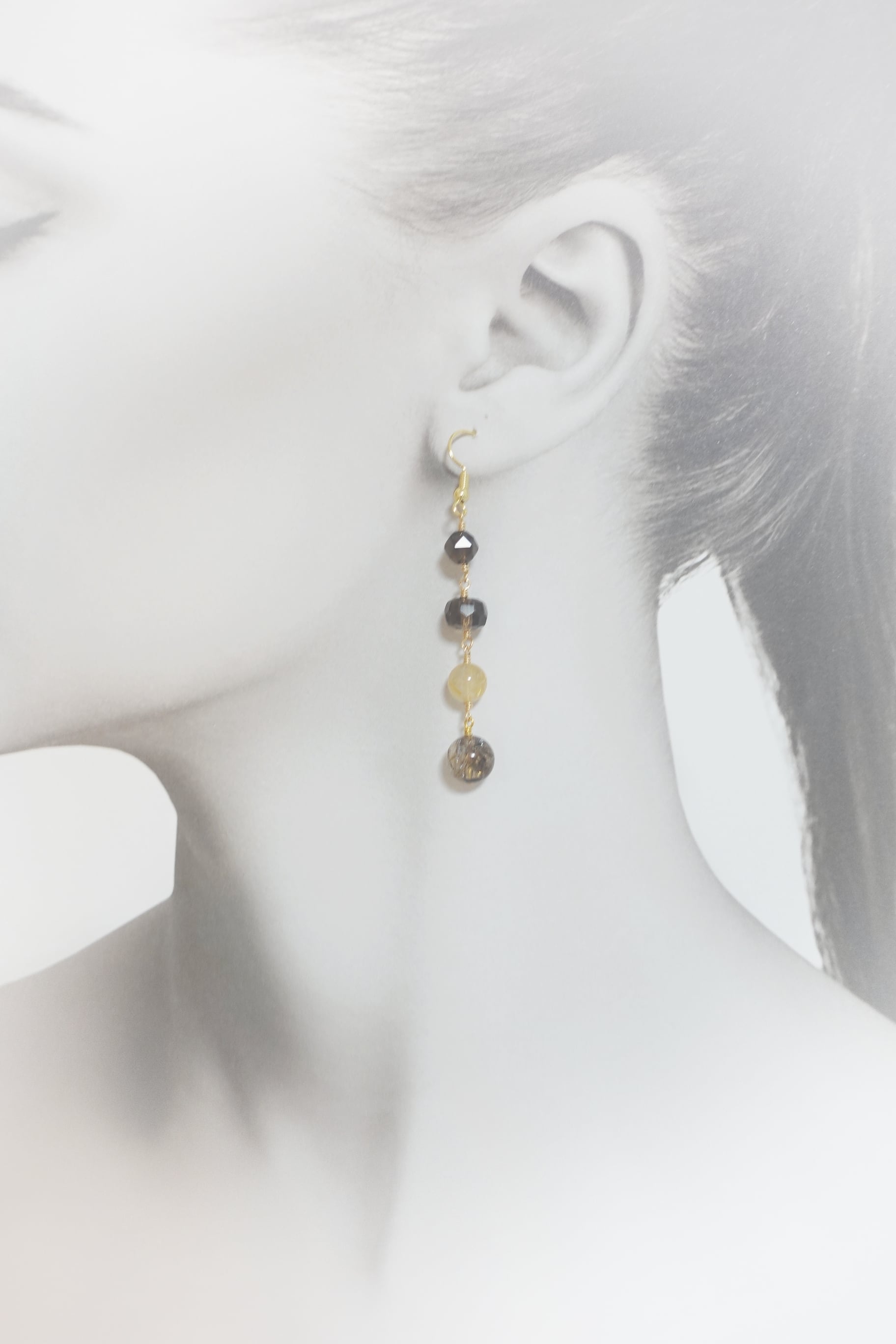 《Abundance ルチルクォーツ》秋のスモーキーカラー  希少エレスチャルクォーツ使用 ロングネックレス&ピアスセット